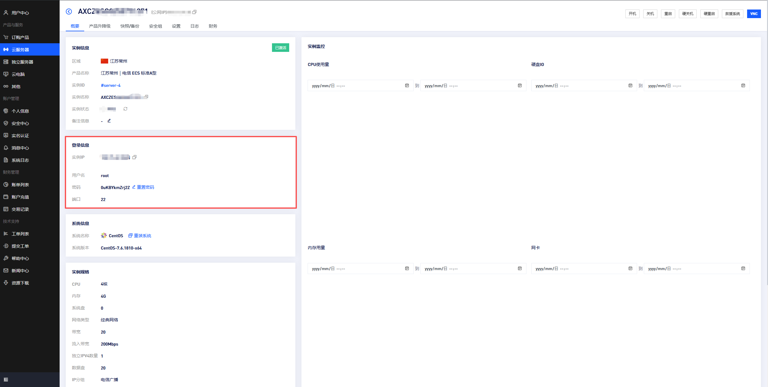 | root 密码 | 系统信息 → 密码一行(随机串) | OukBYkmZrj2Z |