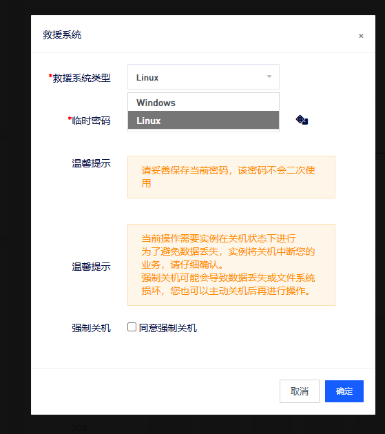- 救援系统:当系统因内核崩溃、配置错误等导致无法正常启动时,可启用此功能。系统将加载到一个独立的救援环境,供您排查和修复问题。