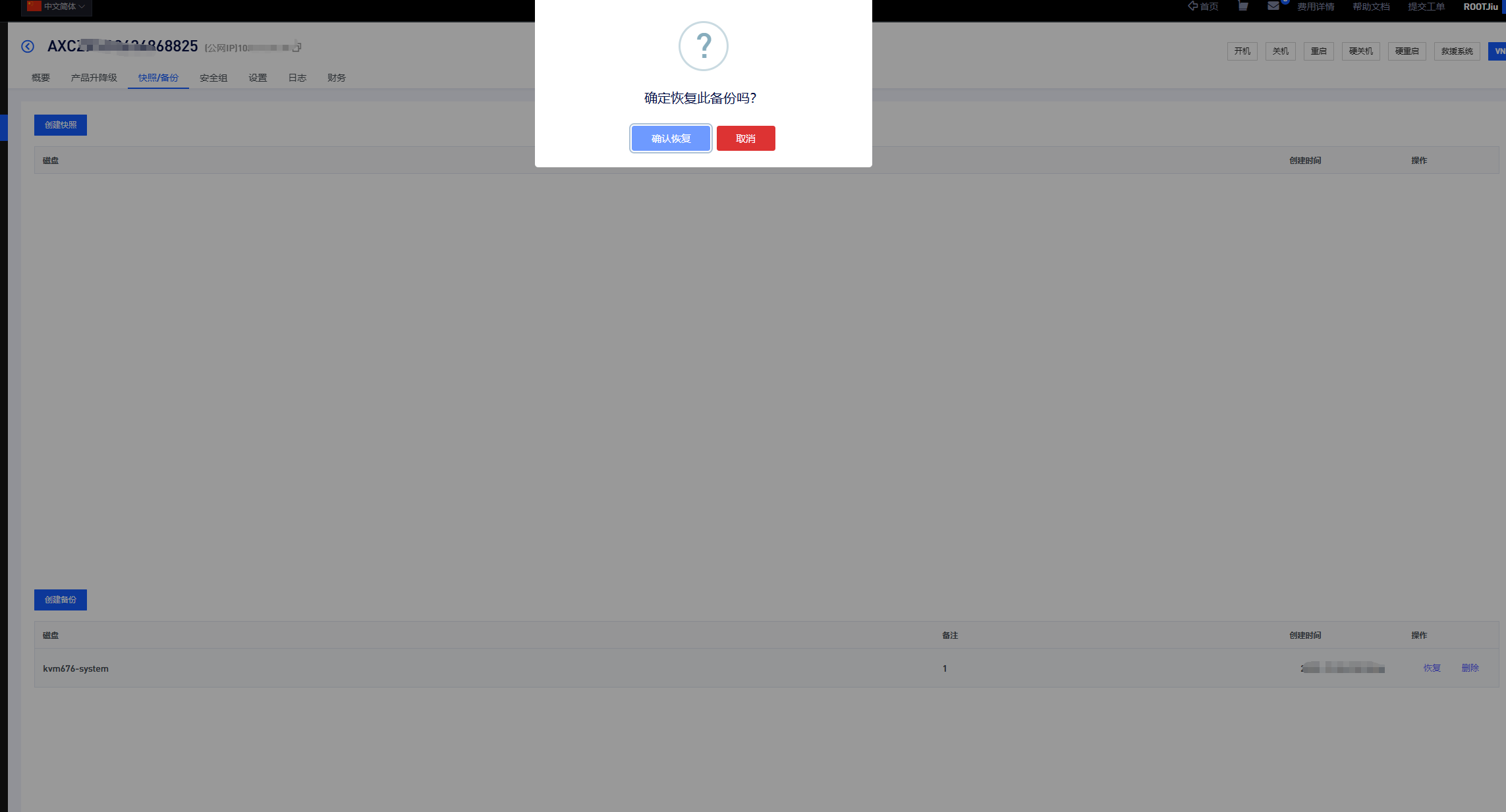 注意:快照/备份功能可能因产品型号或地域而异,请以控制台实际显示为准。