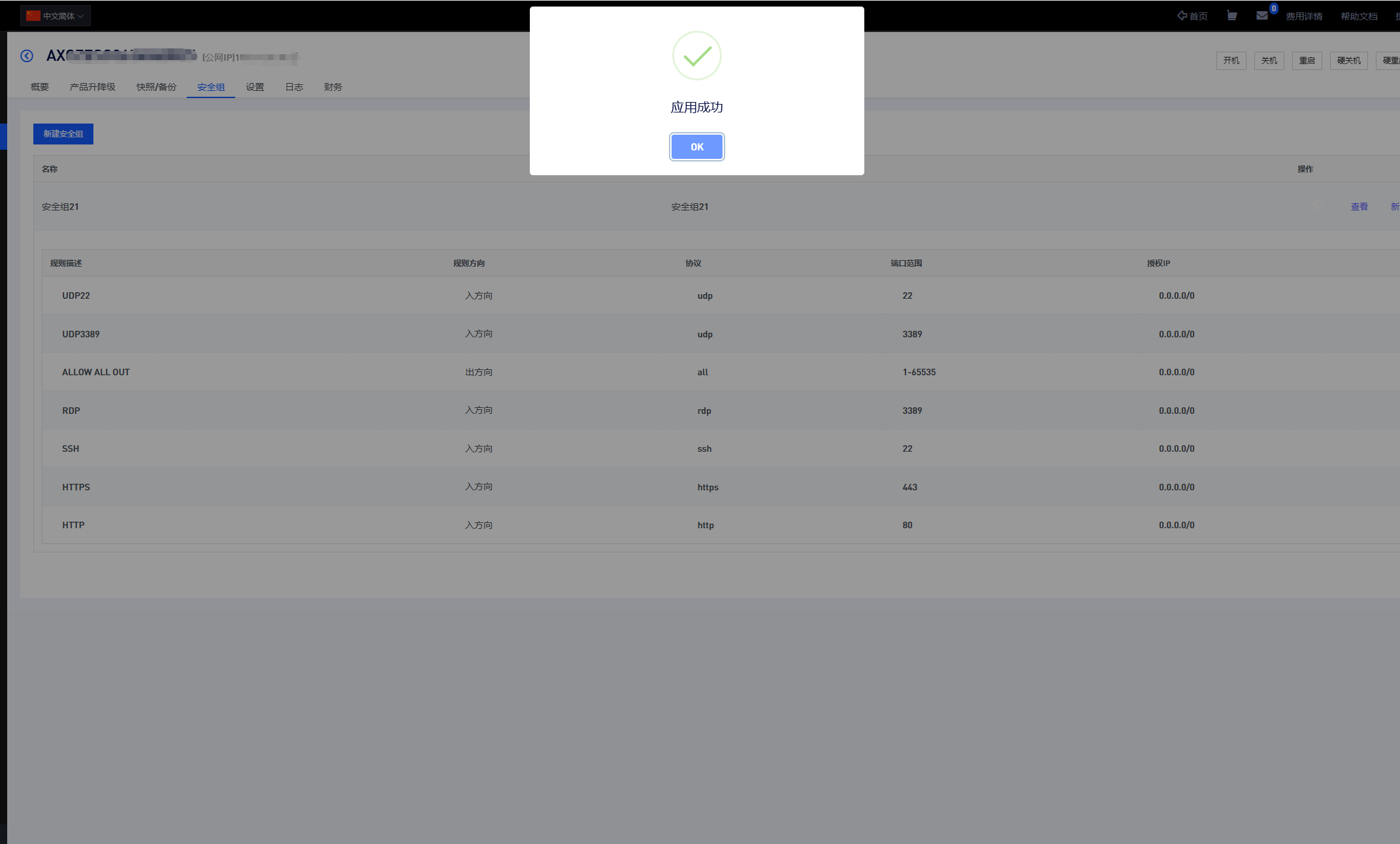 高级警告:安全组配置直接影响服务器网络可达性。非专业人员请谨慎修改,错误配置可能导致实例无法访问。安星云默认端口开放,建议您根据最小权限原则进行细化配置。