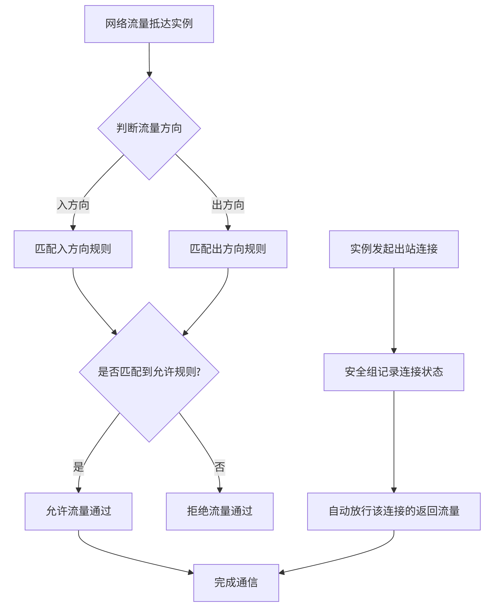 - 状态化:允许出站请求的响应流量自动入站,无需配置双向规则。