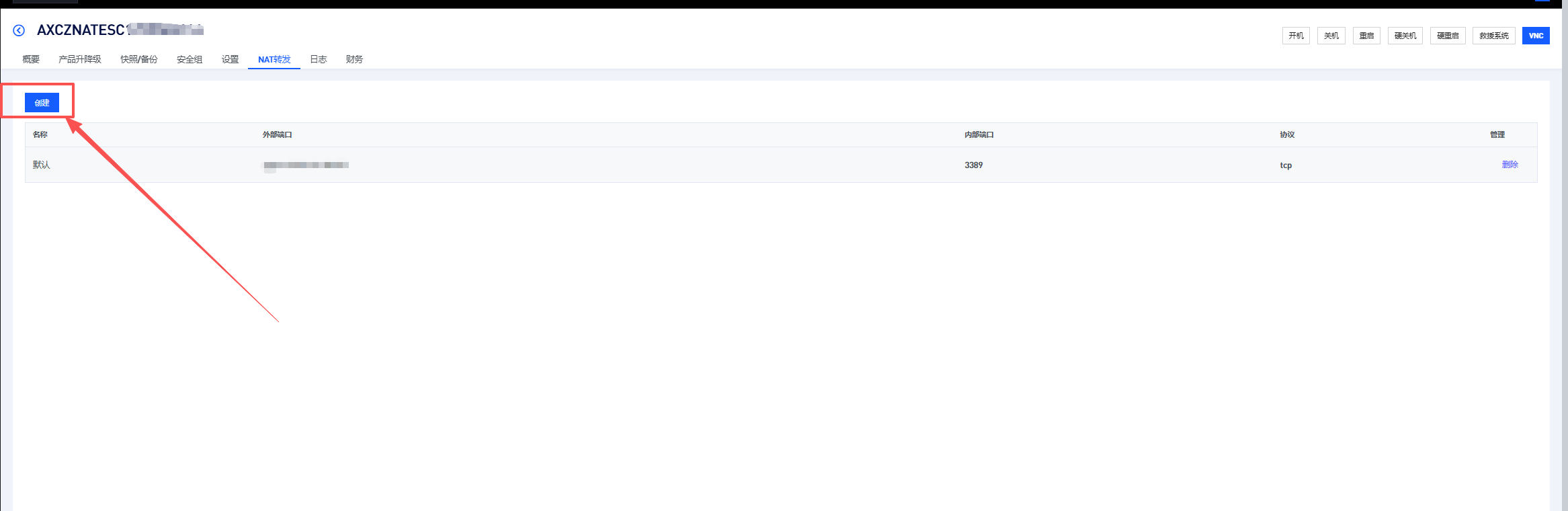 登录安星云平台后,进入实例管理控制台在顶部导航栏中找到并点击“NAT转发”选项,进入NAT转发管理页面。